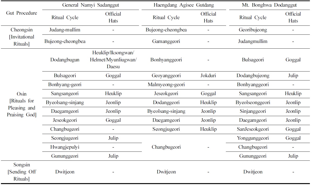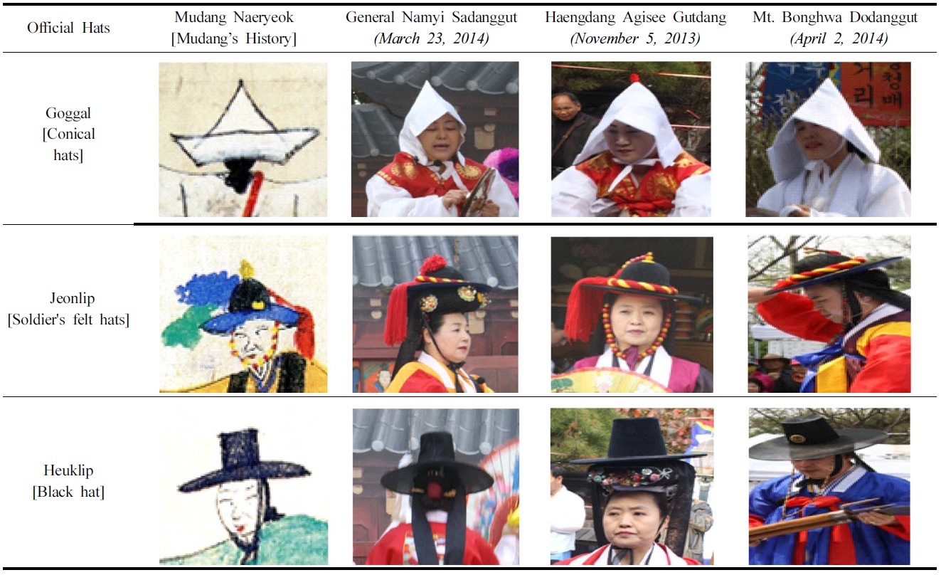 구체적인 굿거리별 관모의 착용을 살펴보면 Table 2와 같다.