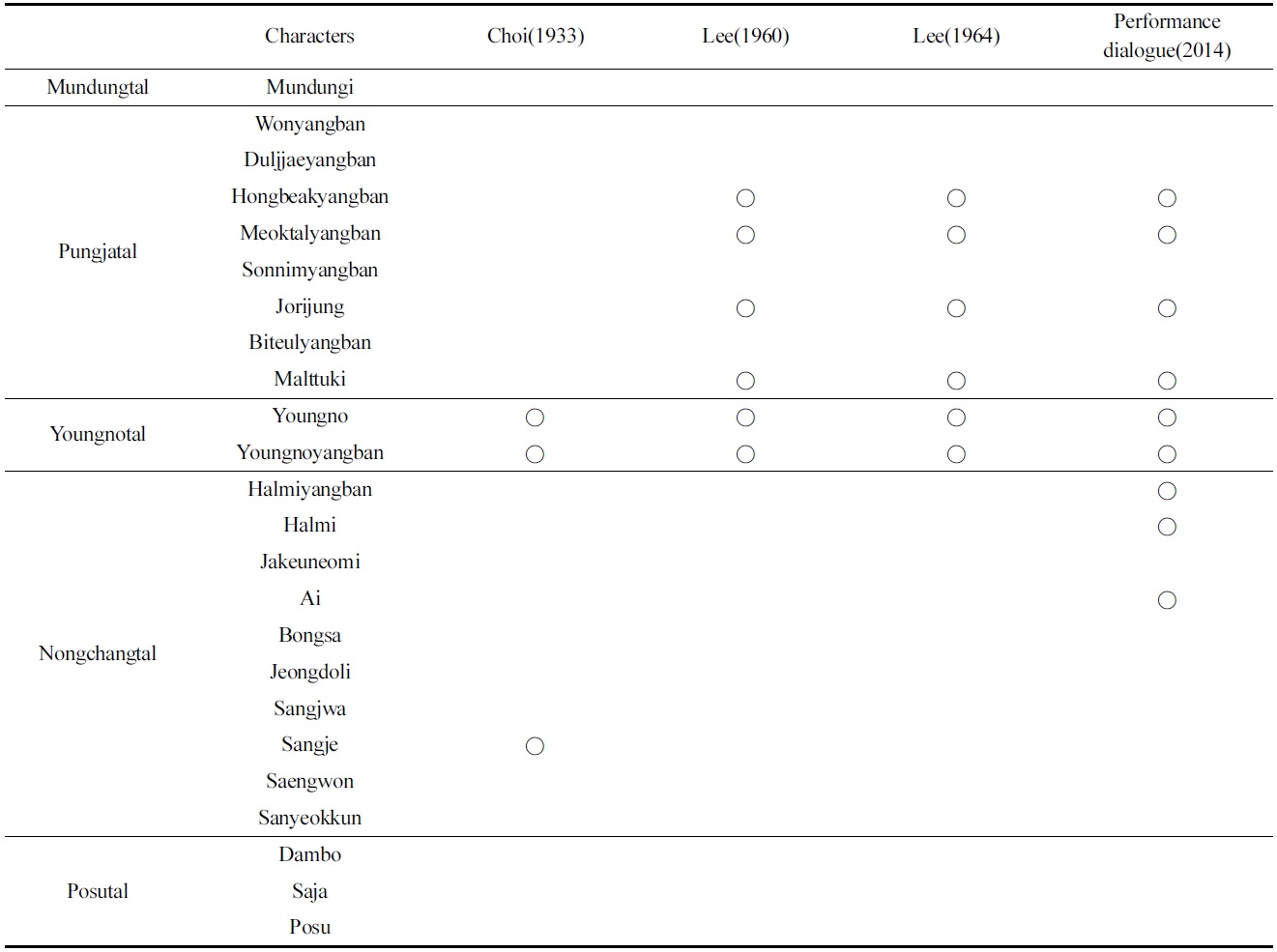 - Jeon, K. W., Research results and prospects in the field of Korean folk performing arts history., The Korean National University of Arts, School of Korean Traditional Arts, ((2000)), 2, p11-48.