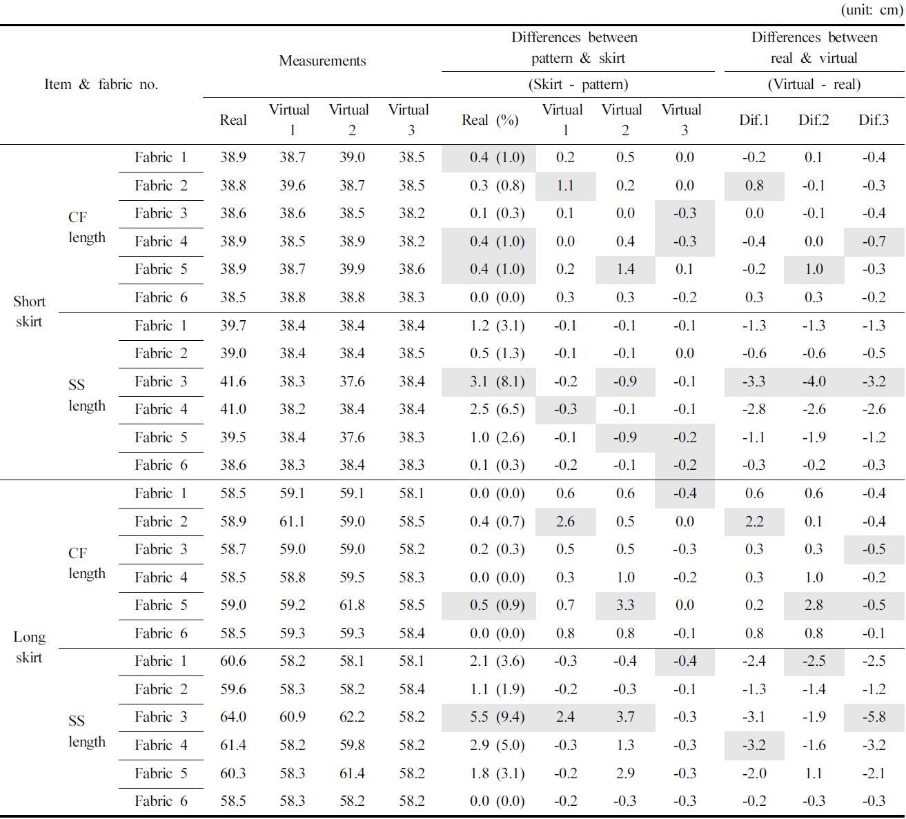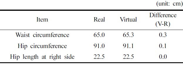 3.3. 실제와 가상 스커트 치수 비교 결과