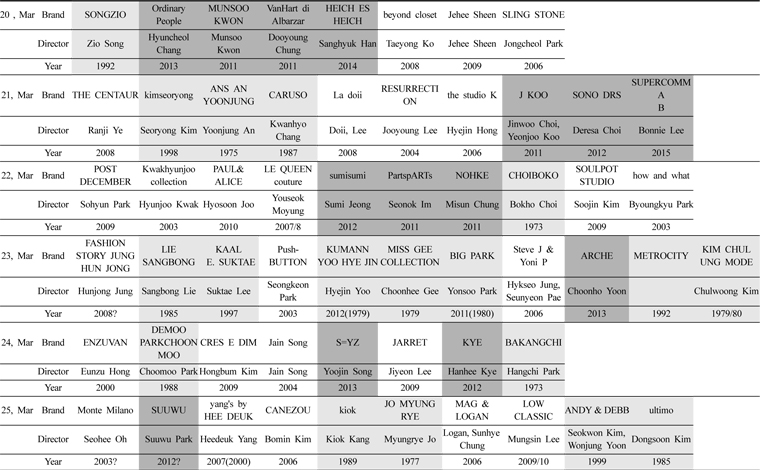 There are various types of designers showing exhibiting at the Fashion Week (Table 4). Almost half of them have run their businesses for less than five years. It is hard to survive for young brands because of financial problems, weak brand identity, inability to keep regular customers, etc. This is why a nurturing program is needed. SFW has Generation Next, which supplies venues on a smaller scale than is needed for Seoul Collection. This is a chance for new designers to operate on smaller budgets, participate in shows and contact buyers, press, and even the public.