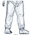 바지는 통이 좁으며 바지 끝에는 신발이 붙어 있는 ‘아낙시리데스(Anaxyrides) 형태이다(Fig. 7). 이는 말 탈 때 기동성을 극대화하기 위하여 고안된 바지로 고대 메디아인과 스키타이인들이 착용했었던 바지이다(Bittner, 1985; as cited in Yi-Chang, 2012, 2016).